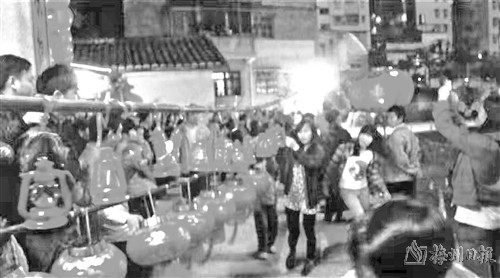 客家人的年俗,年三十敬祖宗,年初二走亲戚;而元宵节,则以赏灯为主。我市各县(市、区)的灯会,以兴宁、大埔最为隆重。