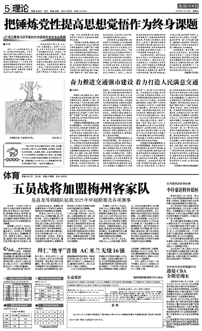 本报讯 (记者叶子通)记者昨日从梅州客家足球俱乐部获悉,经与球员本人友好协商一致,季胜攀、易县龙、陈序煌、凌中阳、孙健祥完成签约手续,成功加盟梅州客家足球俱乐部,将随队征战2025年中超联赛及各项赛事。