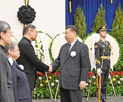 2月20日,邹家华同志遗体在北京八宝山革命公墓火化。习近平、李强、赵乐际、王沪宁、蔡奇、丁薛祥、李希、韩正等前往八宝山送别。这是习近平与邹家华亲属握手,表示深切慰问。(新华社发)
