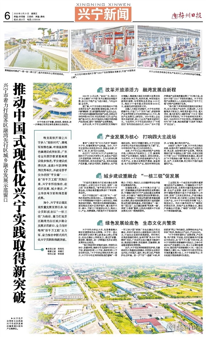 如今,兴宁市正锚定高质量发展首要任务,结合实际提出以“一核三极”为路径,着力打造苏区融湾先行区城乡融合发展示范窗口,全力当好梅州“百千万工程”主力军,奋力推动中国式现代化兴宁实践取得新突破。
