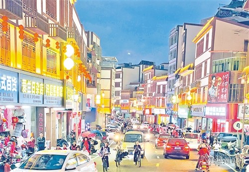 在省“百千万工程”典型镇华城镇,每当夜幕降临,经过用心升级改造的示范主街霓虹闪烁、热闹非凡,升腾着满满“烟火气”。沿街的每栋楼不仅采取了统一建筑风格,更是结合狮雄山秦汉遗址、长乐学宫、武状元李威光等当地特有的文化特色,让圩镇不仅有“型”更有“魂”,吸引众多游客纷纷打卡。