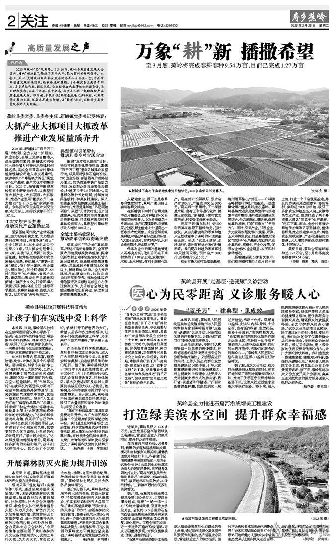 开栏语2025年是“百千万工程”实现“三年初见成效”目标的重要节点。蕉岭坚定扛起“百千万工程”首批典型县使命任务,积极统筹好生产生活生态三大布局、县镇村三大层级和党政企业社会三大力量,着力激活改革开放创新三大动力,提质建好典型县,加快培育典型镇村,努力在经济发展、功能提升和形象改变上争突破、见成效。即日起,本报推出《“百千万”·建典型·见成效》专栏,以“百千万工程”为主线,记录蕉岭各镇各单位加力提速推进“百千万工程”,加快完成“三年初见成效”目标的奋斗足迹。