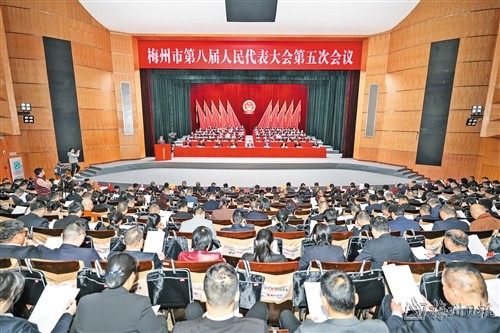 本报讯 (记者朱庆强 通讯员梅研)2月25日上午,梅州市第八届人民代表大会第五次会议在梅城客家艺术中心开幕。市委书记、市人大常委会主任马正勇出席大会。市长王晖向大会作政府工作报告。市人大常委会党组副书记、副主任蓝伟东主持大会。