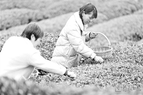 2月25日,茶农在秭归县茅坪镇中坝子村茶园采摘早春茶。