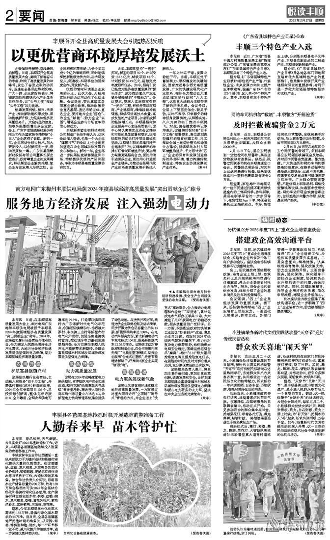本报讯 近日,广东省“百县千镇万村高质量发展工程”指挥部办公室、广东省发展改革委发布《广东省县域特色产业目录》,丰顺县共有三个特色产业入选。