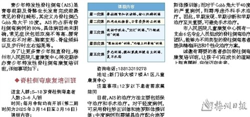 市人民医院“青少年脊柱侧弯康复培训班”报名开启