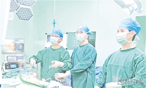 “检查后发现患者结石比较大,结石与输尿管黏膜粘连长息肉了,况且右肾输尿管积水多,输尿管扭曲明显,常规的输尿管技术和经皮肾技术治疗都不理想。”该院泌尿外科副主任、广州中医药大学兼职教授、主任医师林立国说。