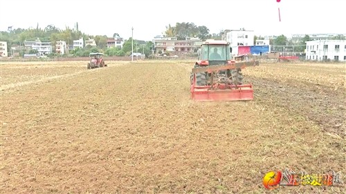 在安流镇吉程村,马达轰鸣,机声隆隆,耙田机在田埂间穿梭自如,锋利的耙齿深深切入泥土,将板结的泥块瞬间搅碎,原本僵硬的水田被翻耕得松软如绵,为播下希望的种子做好准备。
