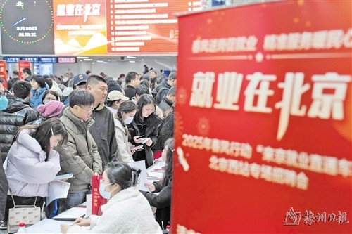 2月28日,北京市人力资源和社会保障局联合北京市重点站区管理委员会在北京西站地下二层旅客服务中心举办2025年春风行动“来京就业直通车”专场招聘会,近百家企业提供岗位3000余个。不少来京求职者刚下火车,又乘上“就业直通车”。据统计,现场共吸引3500余人参与,用人单位收取简历1470份,初步达成就业意向517人次。