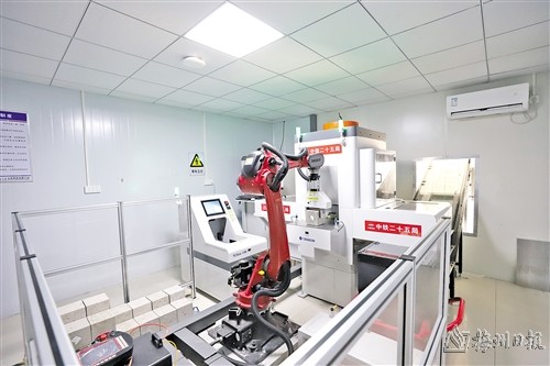 本报讯 (记者郑炜梅 通讯员黄诗伟 龙敏)记者获悉,自动化试验机器人“砼强一号”已在武梅铁路3标试验室正式投产,这是广东省在建铁路项目首次将自动化机器人应用于试验检测领域。