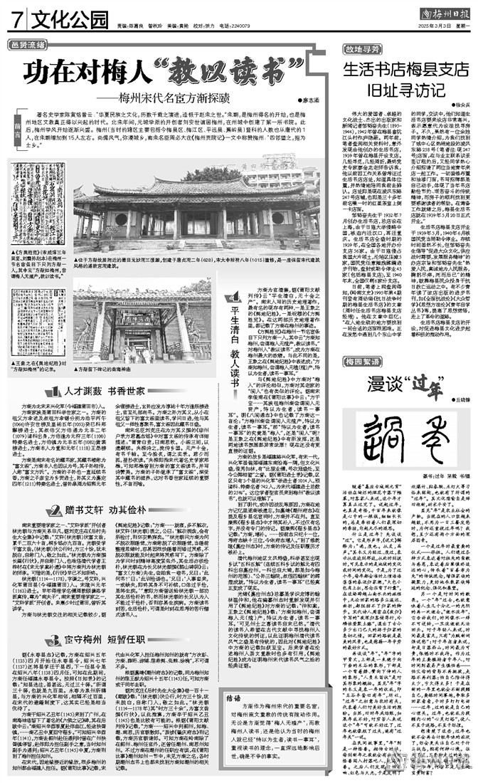 方渐的故乡是福建路兴化军,有宋一代,兴化军虽偏居福建东南沿海一隅,但文化兴盛,俊秀如林,有“比屋业儒,号衣冠盛处,至今公卿相望”之誉。据《莆阳进士录》记载,区区只有3个县的兴化军“举进士者1014人,预诸科、特奏名者742人,为宋代福建进士总数的25%”。这位学者型官员来到梅州“教以读书”,也就可以理解了。