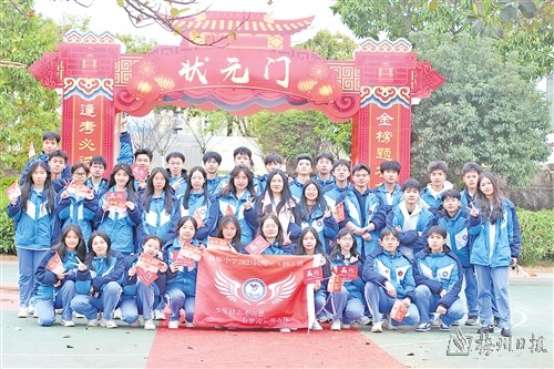 大会现场,还举行了“赢战”高考倒计时揭幕、走过状元门、橡树下许愿等仪式。学校党支部书记、校董会董事长葛成石、校长温志浩共同为赢战高考倒计时揭牌。“倒计时104天”的牌子激励着每一位梅雁学子勇往直前,向着梦想全力冲刺。教师和学生宣誓后,学子们跨过状元门,在卷轴上签下自己的誓言和名字,并在橡树下许下愿望(如上图),许愿带承载着师生们的美好祝福和祈盼,绽放着耀眼的光芒。