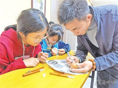 近几年来,罗景龙积极投身蛋雕培训志愿服务,举办“小小蛋壳 大大创意”非遗蛋雕亲子艺术课程、大埔县罗景龙蛋雕文艺志愿服务培训班等,毫无保留地讲授蛋雕历史、特点、技法等知识。“蛋雕虽小,却内含乾坤。通过线描、镂空、影雕、拼雕、套雕等形式,可以呈现五彩纷呈的大千世界。目前,梅州蛋雕尚在起步,我希望能以志愿服务点亮非遗传承之光,让孩子们从蛋雕赏析中发现它的美,形成传统文化的传承,激活文化基因。”罗景龙信心满满。