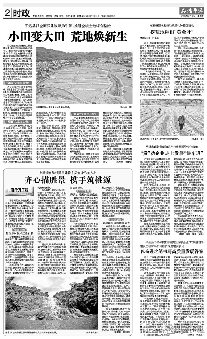 当春天的脚步轻盈踏入平远县上举镇畲脑村,这里便满溢着盎然生机与蓬勃活力。沿着036县道向畲脑村徐徐前进,一幅绚烂的春日图卷在眼前缓缓铺展:灼灼桃花肆意盛放,高大挺拔的广玉兰馥郁迷人,杏花也毫不逊色,尽情舒展……在“百千万工程”引领下,畲脑村正蝶变为独具魅力、宜居宜业的和美乡村。