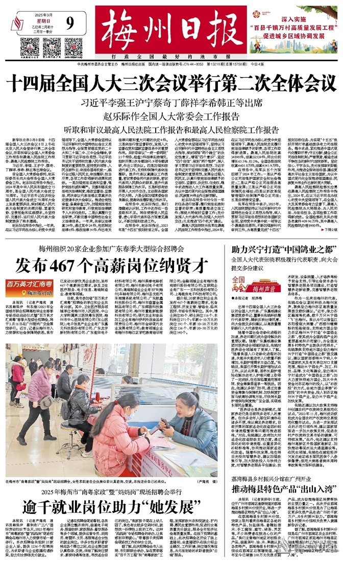 本报讯 (记者严海苑 通讯员赖泯伊 何志煌)2025年全国城市联合招聘高校毕业生春季专场活动启动仪式暨“百万英才汇南粤”春季大型综合招聘会,将于3月16日在广州琶洲广交会展馆举行。近日,记者从梅州市人力资源和社会保障局获悉,我市已发动20家优秀企业参加,发布467个高薪岗位需求,涉及卫生医疗服务、电子信息、高端制造业、教育等领域。