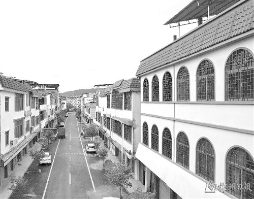 如今的黄槐,天蓝水绿。站在圩镇三岔路口,左手边是统一规划的客家风貌房屋外立面,风格独特;右手边是灰黄相间的军旅风貌街道,点缀着小清新色彩的广告招牌,别具风情。