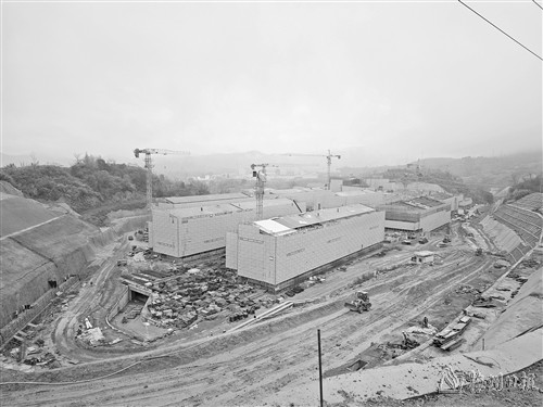 在广东省全民国防教育基地建设现场,机器来往穿梭,工人们挥洒汗水。