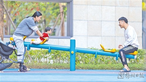 跷跷板上孩子的笑声像抛物线,起伏之间,是父母用爱在称量:悬浮于离地一尺高,既不让笑声落地,也不让尘埃扑身。