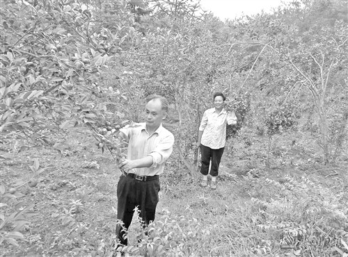 听说湖南攸县的大果茶果大油多产量高,我便托人从攸县买回了700多株已有2市尺多高的“攸县油茶”苗,除我自己计划种150株外,余500多株送给“种植欲”更强的堂兄弟等人,同时,请求他们帮助我开穴和种植。在他们的帮助下,我把150多株油茶种在了近家的三处旱地上。由于种植时1尺半多宽深的茶穴里放了鸡粪、烂秆草等基肥,结果种后的第三年,茶树就呈现出很好的生长态势,部分较壮的茶苗开始结果。到第四年,茶树长成2米多高,结出像少女红红脸蛋的果实,把茶树压得向来人“鞠躬”,挂得多的甚至“作风踏实”“接地气”,着实惹人喜爱。首采当年,打茶油8斤。看到丰收的果实,妻子擦着额门上的汗珠,对我说:“我们再把另一块旱地也种上吧!”我说:“20世纪80年代落实林业责任制时生产队分给我家在黄竹夹的那块茶山不是也就近吗?现在我也退休了,两人来去开垦,这样花时少,见效快,这种土法改造茶园,估计两年后即可打茶果!”妻子说:“还是短头发的想得好!”