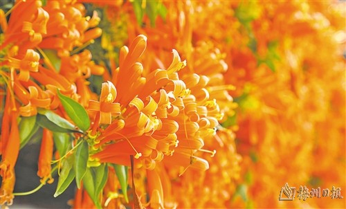 拐过村口,转过农家场院,忽见橙红瀑布自石墙倾泻而下。密密匝匝的炮仗花挤作金红色漩涡,细看每朵都似捻着引信的小爆竹。老阿婆坐在石墙边上择菜,花影在她银白的发髻上跳跃,恍若时光窖藏的陈年爆竹,仍在传递着岁岁平安的祝祷。花开一抹红,串串点亮春。这些炮仗花仿佛是岁月的见证者,它们在老阿婆的身边绽放,诉说着岁月的流转和生命的延续。