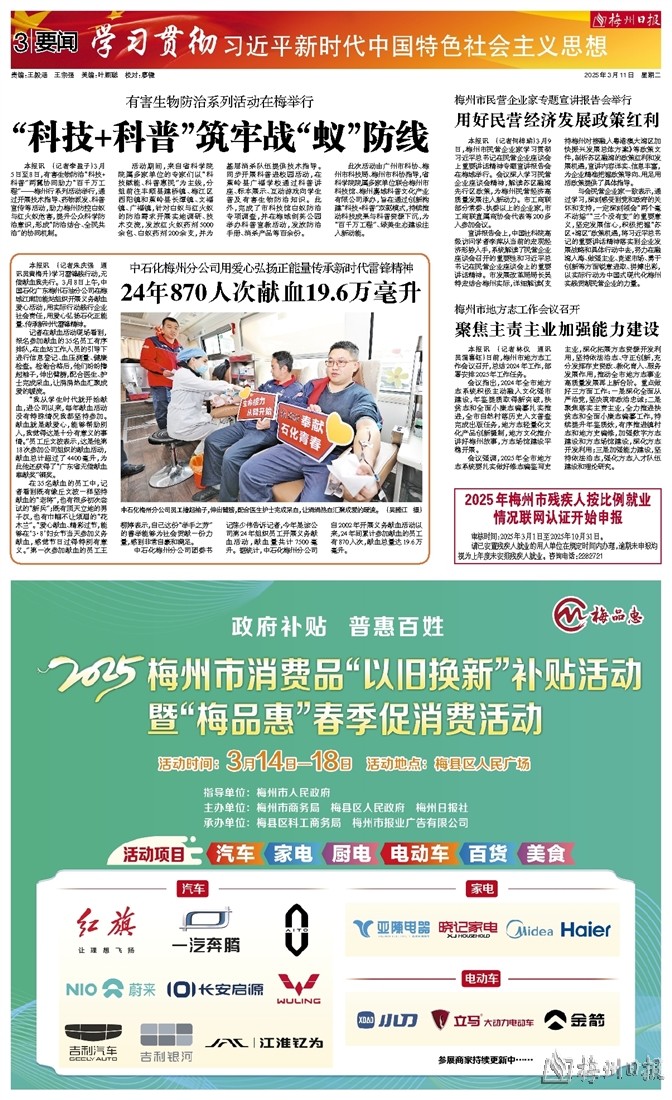 本报讯 (记者李盈子)3月5日至8日,有害生物防治“科技+科普”两翼协同助力“百千万工程”——梅州行系列活动举行,通过开展技术指导、药物派发、科普宣传等活动,助力梅州防控白蚁与红火蚁危害,提升公众科学防治意识,形成“防治结合、全民共治”的协同机制。