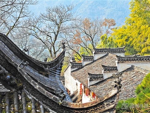 展览馆侧门外是竹山书院,门楼的砖雕造型是典型的徽州特征。供奉的“百世经师”文公先生像和“读书乐”横匾下的课堂,弥漫着淡淡的书香,仿佛能嗅出篁岭古村内敛而深沉的人文底蕴。