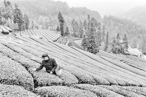 随着气温回暖,茶农忙碌在茶园里,采摘早春茶,供应市场。