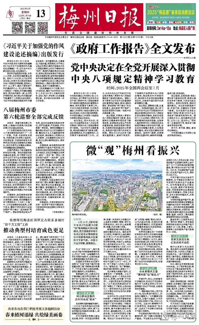 本报讯 (记者朱庆强)3月11日,市政协党组书记、主席杨朝晖到梅县区,就深入学习贯彻党的二十大、二十届三中全会精神和习近平总书记对广东系列重要讲话、重要指示精神,认真落实省委“1310”具体部署,按照市委八届十次全会暨市委经济工作会议和市“两会”工作安排,调研定点联系县镇村“百千万工程”工作。