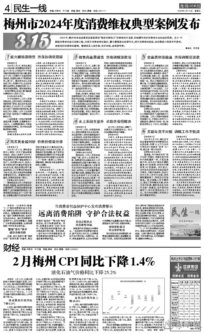 2024年,梅州市市场监管系统紧紧围绕“激发消费活力”消费维权年主题,积极履行保护消费者合法权益的职责。在3·15国际消费者权益日到来之际,为提升消费者维权意识,警示震慑违法经营行为,提升消费维权效能,本次甄选六宗具有代表性、典型性的消费维权案例。案例涉及人身伤害、货不对板、虚假宣传等。