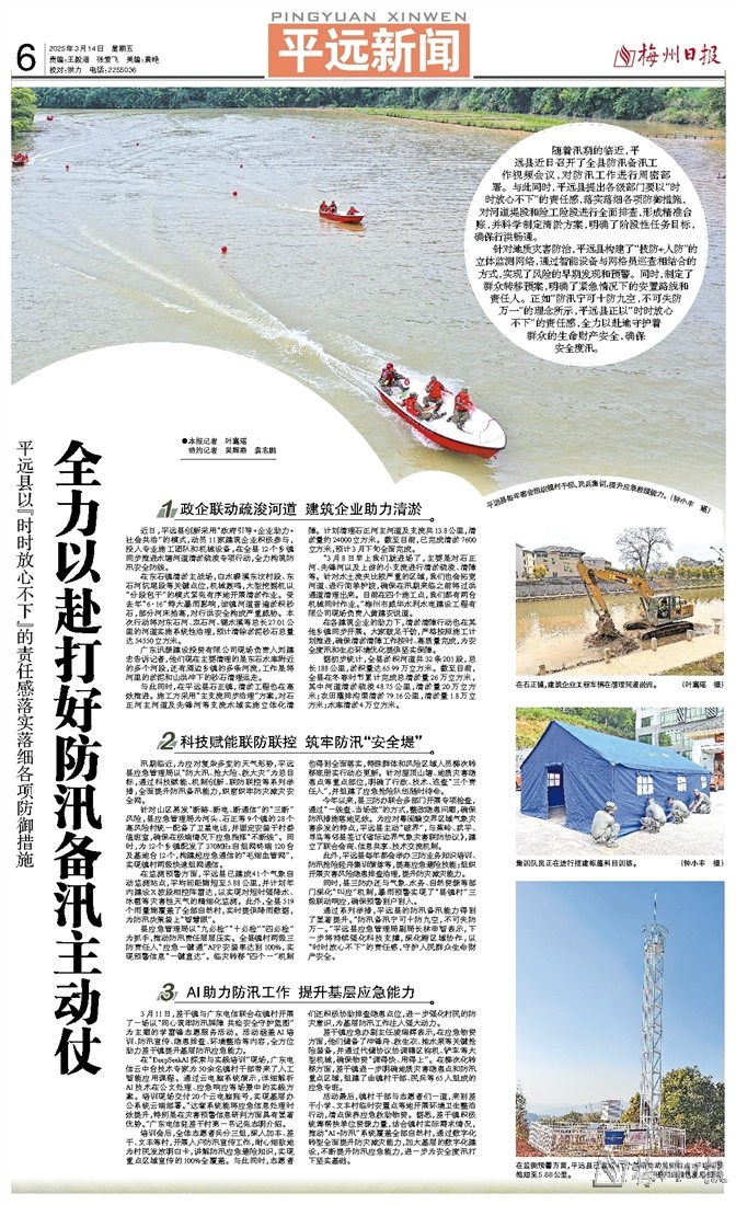 汛期临近,为应对复杂多变的天气形势,平远县应急管理局以“防大汛、抢大险、救大灾”为总目标,通过科技赋能、机制创新、联防联控等系列举措,全面提升防汛备汛能力,织密织牢防灾减灾安全网。