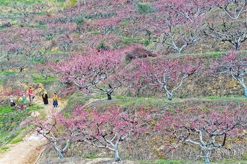近日,蕉岭县广福镇豪岭村桃花源山庄的350亩桃花竞相绽放,深深浅浅的桃红遍染林间,似烟如霞,吸引众多市民和游客前来打卡,共赏春景。“三八”妇女节当天,该山庄接待游客达8540人次。