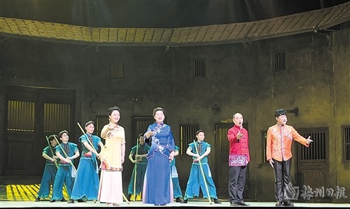 本报讯 (记者何梓瑜)3月13日晚,客家山歌剧代表性传承人(师带徒)成果展晚会在梅城举行(如下图,何梓瑜摄)。