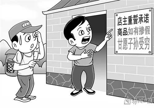 这种招揽顾客的奇葩方式,可称为“发毒誓”式营销。商家出此狠招,无非是想利用传统文化中对“毒誓”的敬畏心理,通过夸张性和冲突性语言博取关注,暗示自家商品质量有保证,试图快速赢得消费者信任,最终达到营销目的。