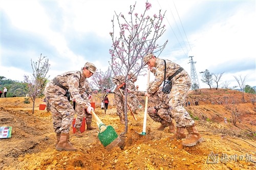 三月如歌,万物齐唱。人们满怀希望与憧憬,为未来埋下充满生机的种子。梅江区三角镇泮坑村“文化林”植树活动,一棵棵新植的树苗,使“人与自然和谐共生”的文章变得具象。兴宁昔日的矿山正在复绿,众人一同挥铲浇水,描绘产业融合绿色发展的画卷。