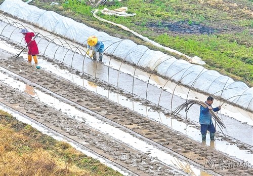 惊蛰过后的田野正被春雨与汗水唤醒。梅县区丙村镇,工人正在加紧育秧,尖尖的绿芽迫不及待地萌发,农夫扶稳机械翻地,滴滴答答敲醒大地的惺忪。蕉岭县广福镇石峰村,排列有序的烟田在春天里“谱”出动人的“田园交响曲”。
