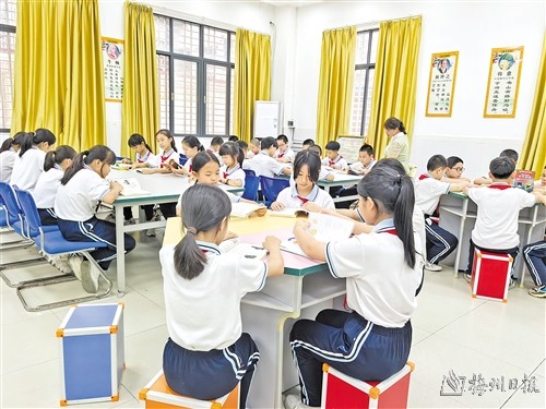 阳光洒满校园,朗朗书声从教室传出,走进兴宁市第二小学(以下简称“兴宁二小”),校园内挂满了学生的书法美术等作品,处处洋溢着浓厚的学习氛围。课间,欢快的竹板歌与欢声笑语在校园回荡,充满生机与活力。近年来,兴宁市第二小学坚守教育初心,不断探索创新,在提升教学质量、落实“双减”政策和传承传统文化等方面持续发力,为学生提升自身综合素养、实现“德智体美劳”全面发展打下坚实基础。