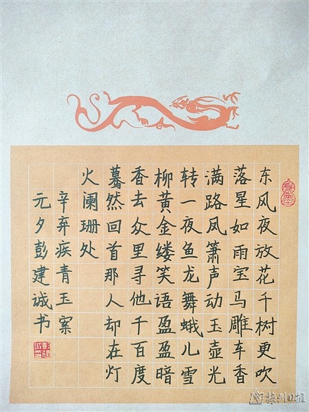 ▲书法 彭建诚(梅江区作新小学505班)指导老师:张娟娟