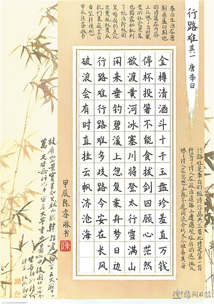 ▲书法 陈睿琳(梅州市梅雁中学初二8班)