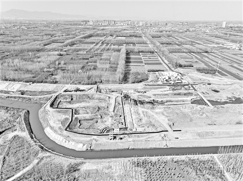 河北省涿州市小清河分洪区建设项目施工现场(3月22日摄,无人机照片)。