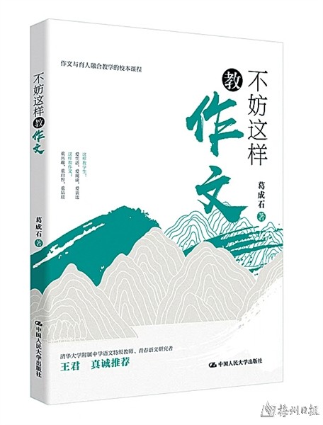 本报讯 近日,梅州市梅雁中学高中语文高级教师葛成石的新书《不妨这样教作文》由中国人民大学出版社正式出版。本书凝聚作者20余年教学与文学创作经验,针对当前学生作文普遍存在的“有形式无内容,有主题无思想”等现象,提出作文与育人融合的教学新理念,为师生家长带来一场“真作文”的革新风暴。该书由清华大学附中的特级教师王君作序推荐。