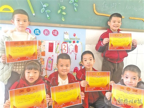 开学初,我对孩子们寒假做的手工作业——创意书签进行了评比,并颁发了奖状。孩子们手捧奖状,笑逐颜开,这既是激励又是鞭策。(陈柳)