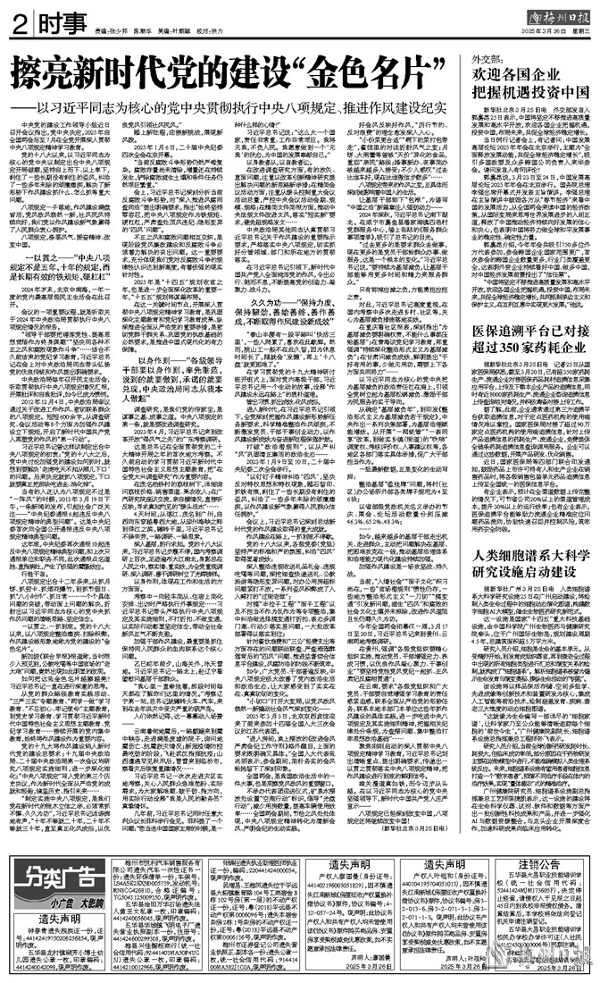 党的十九大将作风建设纳入新时代党的建设总要求;十九届中央政治局、二十届中央政治局第一次会议均研究八项规定实施细则,进一步深化细化;“中央八项规定”写入党的第三个历史决议,作为新时代全面从严治党的成就和经验,镜鉴历史、指引未来……