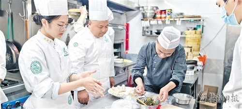 在3月22日举行的“寿乡美食文化”助力“乡村振兴”座谈会上,广州工程技术职业学院专家团队携师生服务队,与蕉岭县人社局、餐饮行业代表共30余人共研客家美食技艺传承与创新,围绕“春飨”主题,将蕉岭春笋、长潭河鲜、三圳山药、广福豆干、南磜土猪、客家娘酒等特色食材融入菜品,共同研讨寿乡一桌菜新做法。