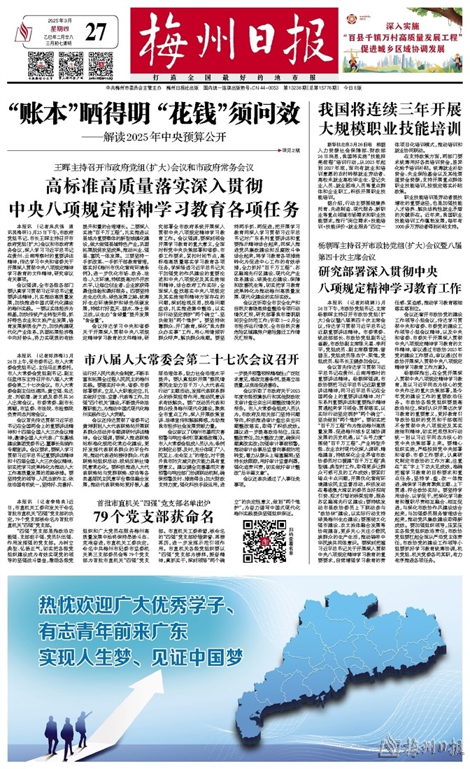 会议首先传达学习贯彻习近平总书记在贵州、云南考察时的重要讲话精神。杨朝晖强调,市政协要把习近平总书记近期重要讲话精神,同习近平总书记在全国两会上的重要讲话精神、对广东系列重要讲话和重要指示精神贯通起来学习领会、贯彻落实,以实际行动坚定拥护“两个确立”、坚决做到“两个维护”。要切实把“百千万工程”作为推动梅州高质量发展、促进梅州城乡区域协调发展的历史机遇,以“头号力度”围绕“百千万工程”、产业转型升级、农业农村现代化深入调研、精准建言,持续深化企业界省市政协委员对口援建“百千万工程”典型镇、典型村工作,取得更多让群众可感可及的工作成效;要紧盯堵点卡点问题,开展优化营商环境建设民主监督活动,积极发动在粤港澳大湾区的委员当好招商引资、招才引智的桥梁纽带,服务苏区融湾先行区建设;要持续发动市县政协委员上下联动参与“政协林”建设,以实际行动支持绿美梅州生态建设;要围绕文化强市建设、农文旅体融合发展等协商建言,更多关心关注少数民族群众的生产生活,推动铸牢中华民族共同体意识。要深刻把握习近平总书记关于开展深入贯彻中央八项规定精神学习教育的重要要求,自觉增强学习教育的责任感、紧迫感,推动学习教育落细落实落到位。
