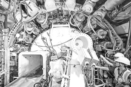3月26日,中铁十四局施工人员检查开挖直径达14.57米的“永平号”盾构机运行状态。