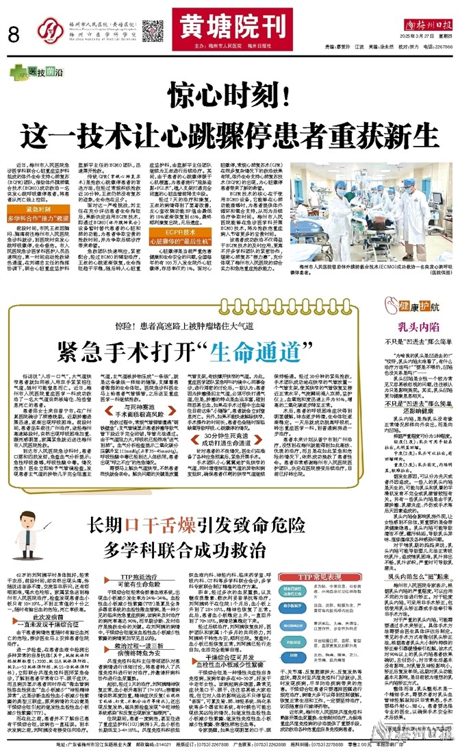 俗话说“人活一口气”,大气道狭窄患者就如同被人用双手紧紧掐住气道,随时可能窒息而亡。近日,梅州市人民医院重症医学一科成功救治了一名大气道突然被堵住、险些窒息死亡的患者。