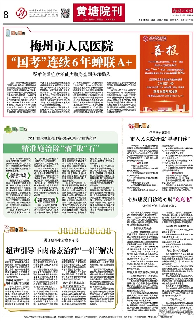 近年来,梅州市人民医院以人民健康为中心,大力开展技术创新,疑难急危重症救治能力大幅提升:拥有心血管内科、肿瘤科两大“拳头学科”,其中心血管内科为国家临床重点专科,肿瘤科为国家临床重点专科建设项目;有国际首创技术3项、国际首次报道病例6例,每年开展新技术超200项;打造了一批高水平的国家级救治中心,救治数以万计的急症患者,被评为广东省胸痛中心示范基地、五星级高级卒中中心。更令人欣喜的是,根据最新的官方数据,医院在疑难危重症救治能力位于全国前列的同时,群众来院看病费用、消耗时间处于全省同水平医院最低行列,就医获得感得到了实实在在提升。