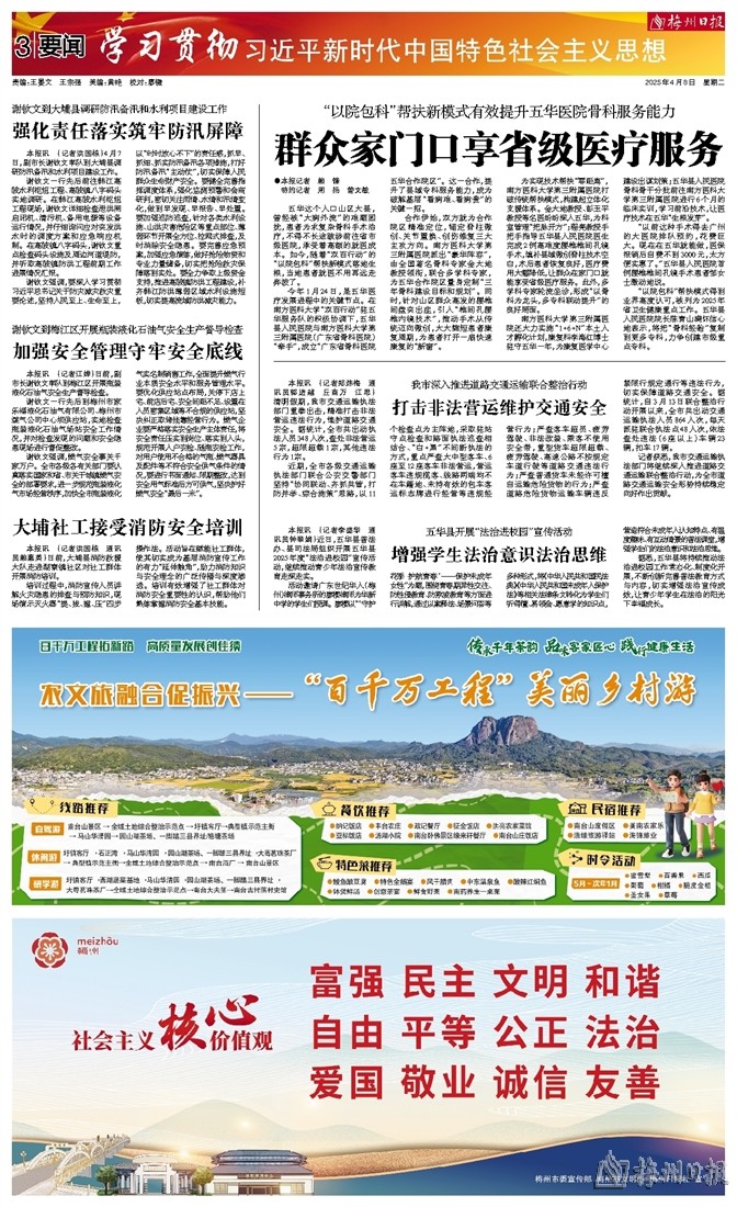 今年1月24日,是五华医疗发展进程中的关键节点。在南方医科大学“双百行动”驻五华服务队的积极协调下,五华县人民医院与南方医科大学第三附属医院(广东省骨科医院)“牵手”,成立“广东省骨科医院五华合作院区”。这一合作,提升了县域专科服务能力,成为破解基层“看病难、看病贵”的关键一招。