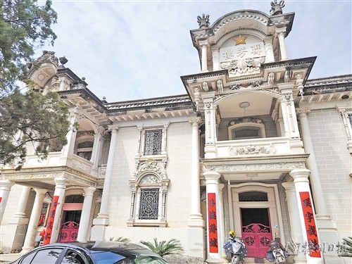离开牛角屋,我们来到了名闻中外的联芳楼。联芳楼坐落在新联村,与广东省文物保护单位棣华居毗邻,是一座中西合璧式的二层客家民居建筑。它于民国20年动工兴建,民国23年竣工,由旅印尼侨商丘麟祥、丘星祥兄弟等耗资24万光洋而建,取“五叶联芳华”而命名。从远处眺望,联芳楼气势恢宏,长近百米,宽四五十米,四周以建筑物环成“围屋”大院。屋的正面是三个凸起的钟楼式大门,其上下左右及所有窗户顶端,都饰以动物和花草浮雕,大大小小不下一二百幅。钟楼上端塑有狮子滚球、双龙夺宝、雄鹰展翅、天使临门等雕像,栩栩如生,让人叹为观止。走进楼内,满眼是古老的屏风、桌椅,这些中国传统的设置与充满西洋风格的细节相互交融,门锁是铜制的,刻着精美的花纹,据说全是从德国进口的。屋内分建房室一百多间,堂、厅、房间、走廊、天井的设计都十分巧妙,大屋的内部设计带有客家围村风格,包括有许多个天井,而每个天井四周也有偏厅,楼上有数十个房间,采用西式布置,不过用的却是中国木制材料,这种中西合璧的风格,既展现了客家人对传统文化的坚守,又体现了他们对西方文化的包容与接纳。