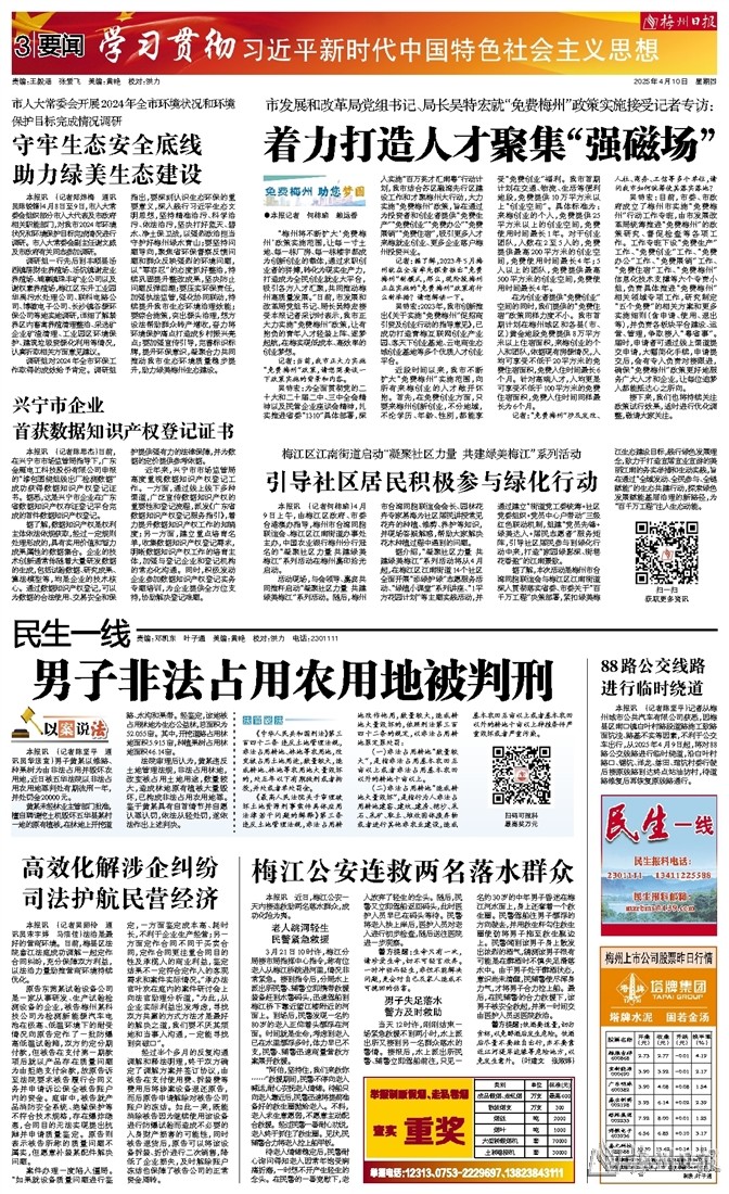 本报讯 (记者陈坚平 通讯员华法宣)男子黄某以修路、种果树为由非法占用并毁坏农用地,近日被五华法院以非法占用农用地罪判处有期徒刑一年,并处罚金20000元。